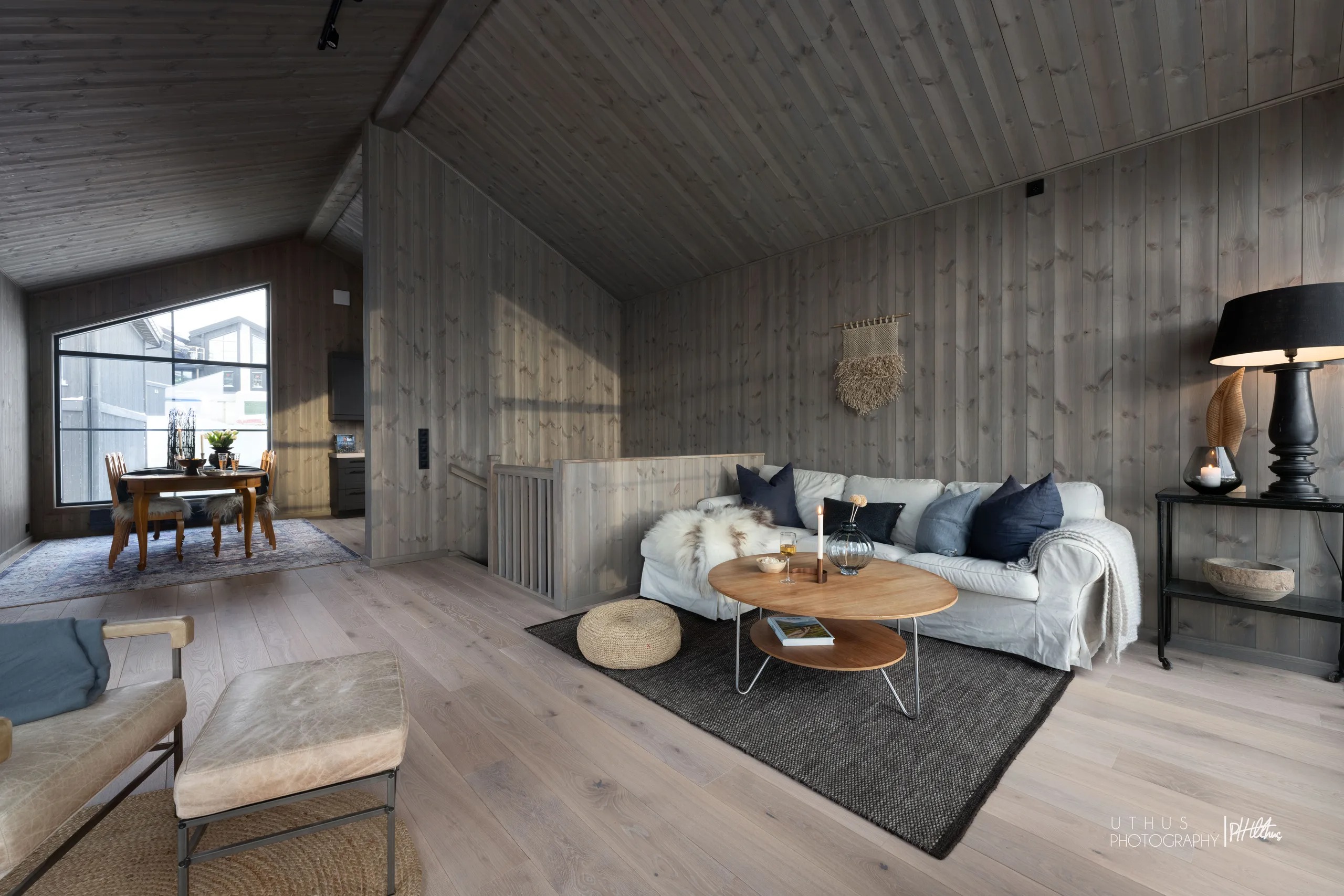 - Bredt heltre eikegulv i hele hytten, børstet og hvitlasert